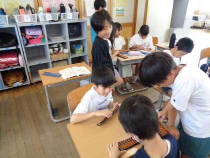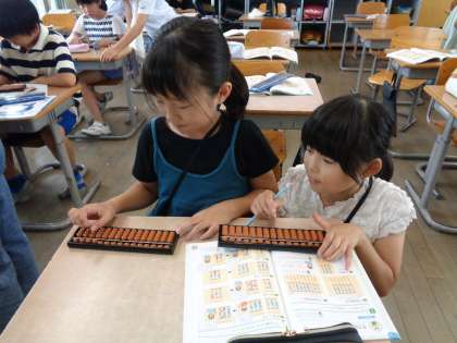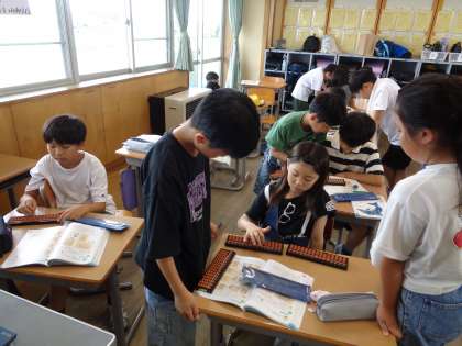 そろばんの使い方を勉強しました。友達と教え合いながら、取り組んでいました。