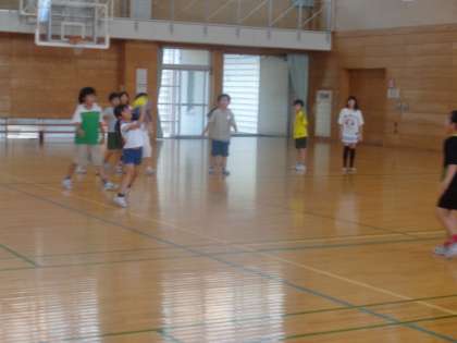 体育館では、ドッジボールやボール鬼ごっこをしました。暑い中でしたが、子どもたちは元気に楽しく参加していました。