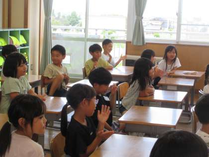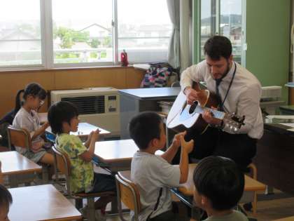 ALTの先生が心を込めて自作の曲を演奏してくださいました。手拍子をしながら、みんなで音楽を楽しみました。