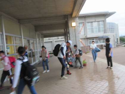 6年生のチャレンジがスタート、元気に学校を出発しました。保護者の皆様、朝早くから準備くださり、ありがとうございます。