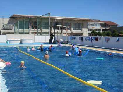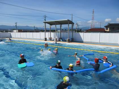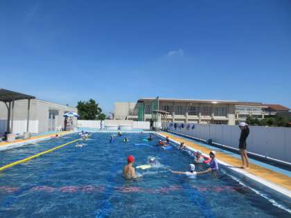 梅雨明けしました。今日も子供たちはプールで楽しく活動しています。