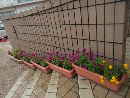 プランターの花々も暑さの中で頑張って咲いています。水をもらって、ほっとしているのかもしれませんね。