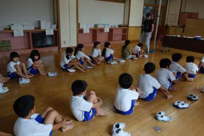 身長と体重をはかりました。後日、測定結果をお配りします。1学期からの伸びを確かめてください。