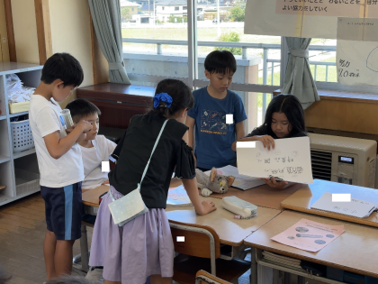 夏休みに各自ががんばって取り組んだ自由研究の作品を紹介し合いました。
