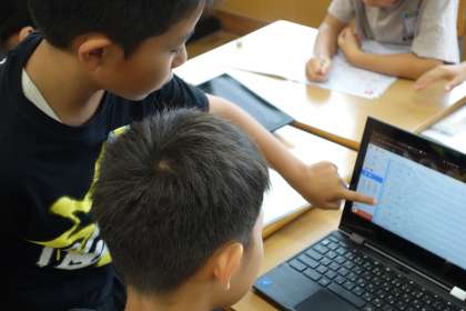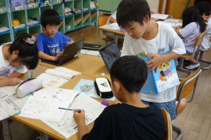 算数科の学習の様子です。新しい学習スタイルにトライ中です。能動的に学習に取り組む姿勢を育てていきたいと思います。