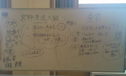 今日は2学期最初の太鼓練習を行いました。宮野清流太鼓の意味を考えた後、それぞれ曲に込められた意味について考えました。
