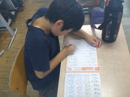 2学期の学習は、各自のペースで進めることとしました。読み仮名をや筆順を確認したり、ポイントを決めたりしながら進めていきます。テストの日に向かって「計画的に」、そして「自分で」学習してけるように支援していきたいと思います。
