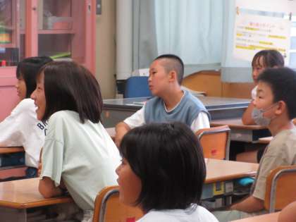 担任の先生が長く関わっている取組について学びました。子供たちは、先生の思いに触れて話に引き込まれていました。