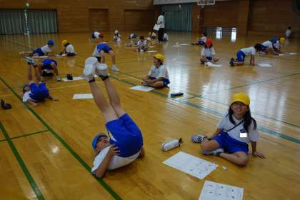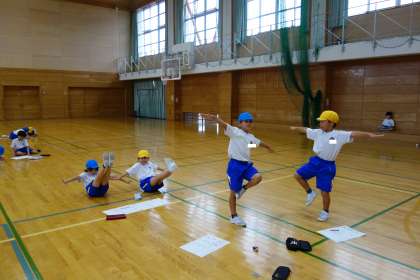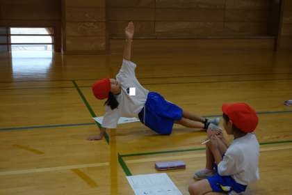体育科の学習の様子です。互いに技を見合い、磨きをかけました。最後は、音楽に合わせて、技を披露しました。