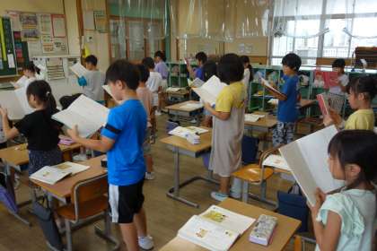 国語科の学習の様子です。子供たちが必要だと感じた事柄を入れて、道案内の仕方(言い方)を考えました。