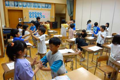 2拍子のリズムで、体を動かしたり、楽器を演奏したりして楽しみました。