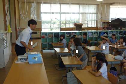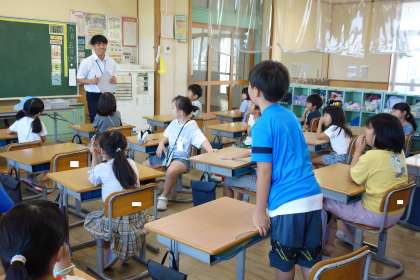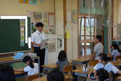 教育実習生さんに質問。笑顔でたくさんのことに答えていただきました。子供たちは、とても嬉しそうな様子でした。