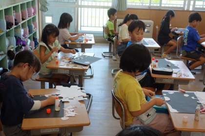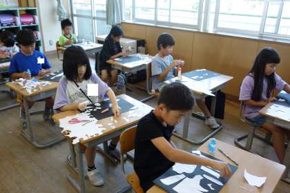 前時までの経験を生かし、作品づくりをスタートしました。イメージを広げて、楽しそうに取り組む子供たちの様子が見られました。