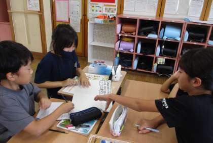みんなで外国語の表現に慣れ親しんでいます。