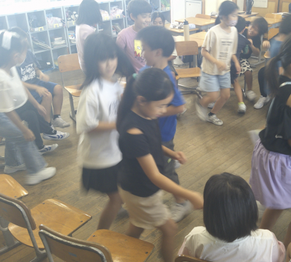 学活の時間を使って、じゃんけんをしたり、フルーツバスケットをしたりしました。みんなで遊びながら仲を深めました。