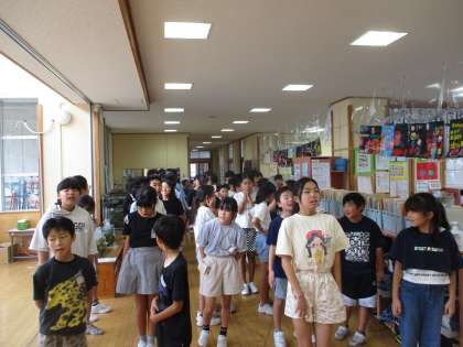 この日は1,2組合同で朝の歌を歌いました。