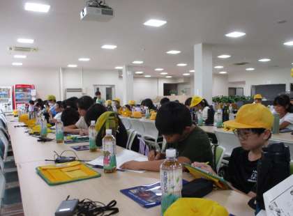 最初の見学先で、しっかりとメモをとる姿がたくさん見られました。