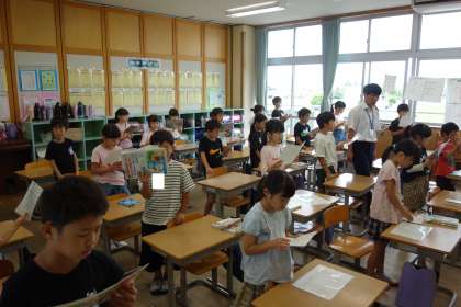 朝の歌の様子です。歌詞も覚え、いい声が出るようになってきました。