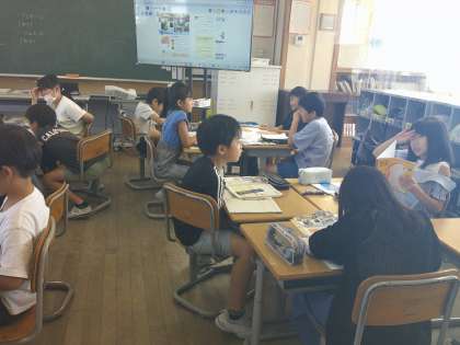 今日は、子どもたちがよく行く店とそのわけを考え伝え合いました。