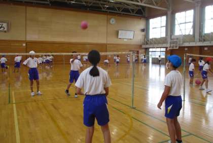 5年生は今、キャッチバレーに取り組んでいます。チームワークがよくなるよう、声をかけながら練習をしています。