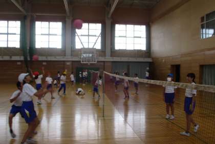 5年生は今、キャッチバレーに取り組んでいます。チームワークがよくなるよう、声をかけながら練習をしています。