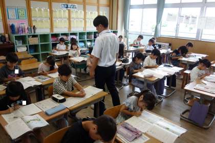 教育実習生の先生による算数の学習の様子です。既習経験を生かして、すらすら解くことができました。
