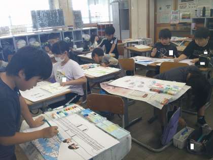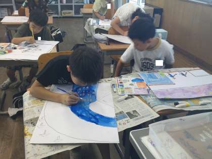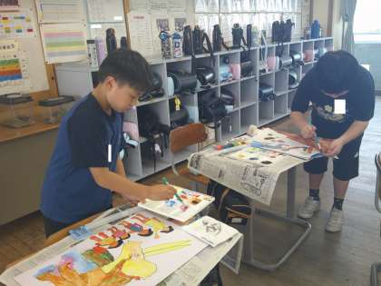 今日は、下描きが終わった児童から、水彩で色つけをしました。