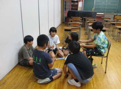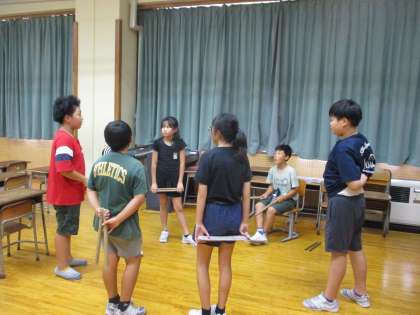 太鼓の演奏をよりよくするにはどうしたらよいか、パートの仲間と一緒に話合いをしました。みんなで腕を伸ばすポイントやかけ声の仕方の確認をしました。