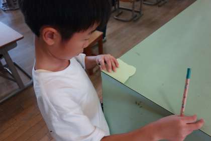 算数科の形の学習の様子です。今日は「直角」という言葉を学習しました。