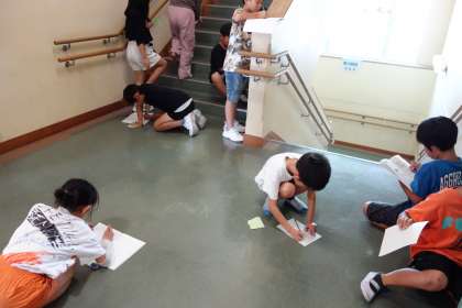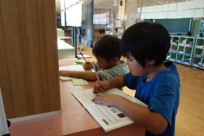 「直角」をたくさん見付け、次々とノートに書き込みました。身の回りには「直角」がたくさんあることを知りました。