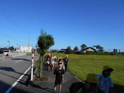 涼しい朝になりました。子供たちは秋空の下、元気に登校しています。