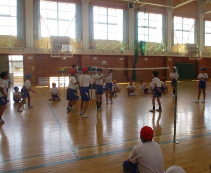クラスの代表チームが試合を行い、すばらしいボールの応酬を見せていました。応援するみんなの姿もとてもすてきでした。