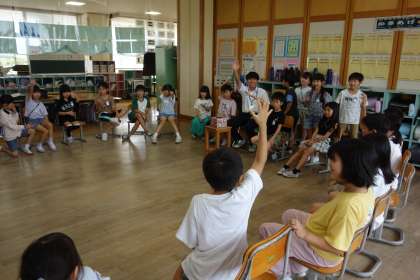 プレゼントタイムの様子です。別れを惜しむ子供たちの様子が印象的でした。