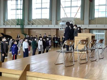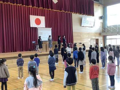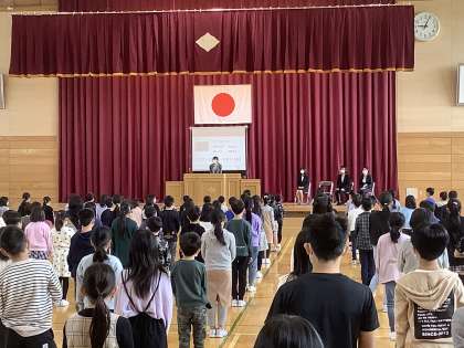 始業式の前に「着任式」を行い、新しい先生と出会いました。