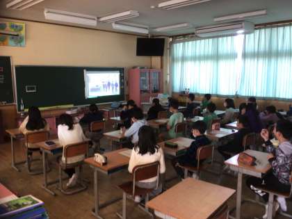 5年生が委員会活動を決めるために、昨年度録画した委員会紹介を見てくれていました。