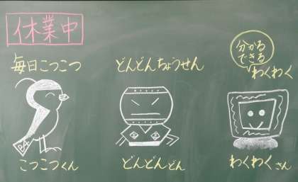 休業中に「こつこつ」「どんどん」がんばると「わくわく」してきますよ。4年生のワークシートは、ほとんどの内ようがみんなで学び合うためのじゅんびです。さあ、学校がさい開したら、みんなで「いきいき」学習するために、この2週間をじゅう実させましょう。
