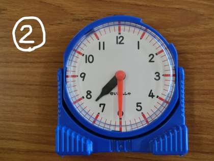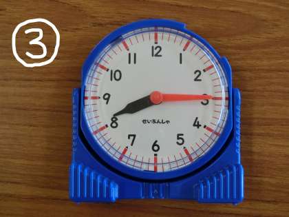 きょうは、とけいのじこくをよむもんだいを出します。ちゃんとよめるかな。こたえは、「きょうのふりかえり」でおしえますね。