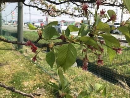 そのかわり、花がちったあとから若々しい緑の葉が出ていました。