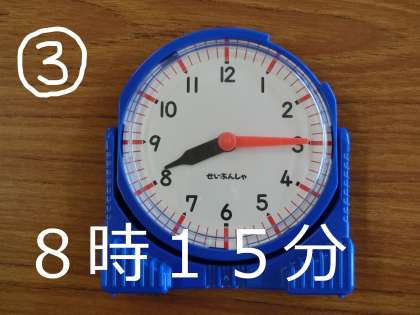 長いはりとみじかいはりをよく見て、時計をよむといいです。