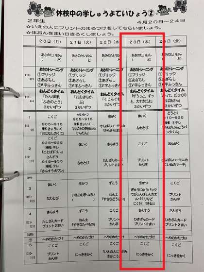4月23日(木) 2年生 よてい