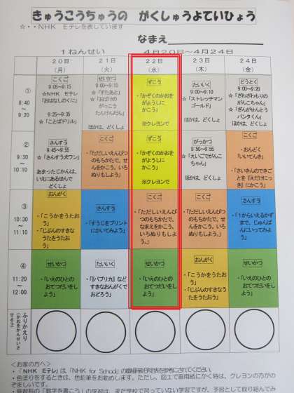 4がつ22にちの よてい(1ねん)