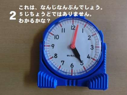 さっそく、きょうの学校クイズです。いえでもちゃんと時計を見てじかんを気にしていますか?きょうのもんだいは、「なんじ なんぷんでしょう?」をきいているむずかしいもんだいもありますよ。