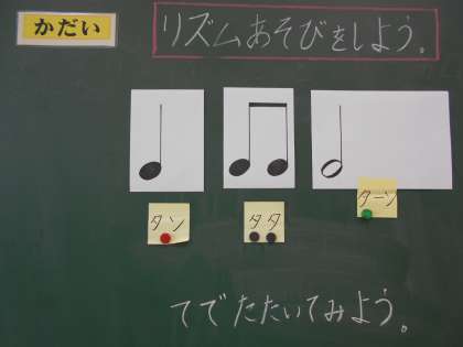 きょうは、おんがくのがくしゅうがあるがくねんもあるので、おんがくのべんきょうをしましょう。どんなおんぷをしっていますか。またおしえてください。