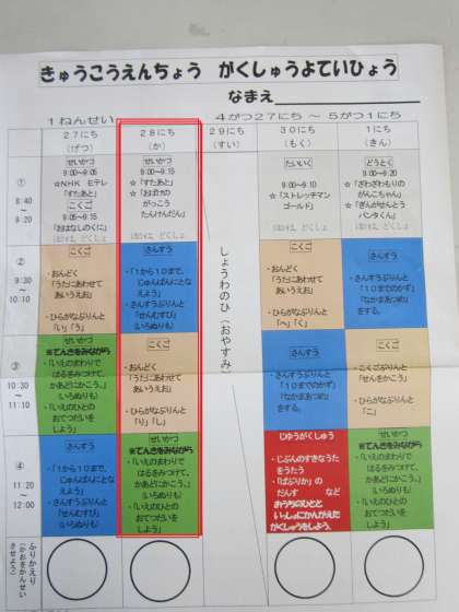 4がつ28にちの よてい(1ねん)