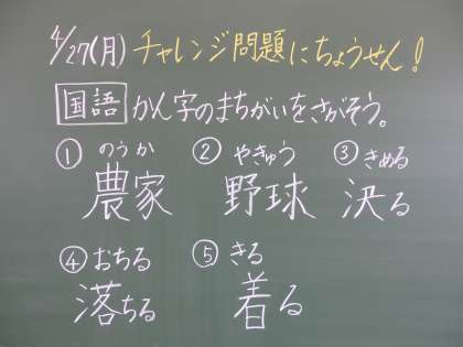 さて、今日は漢字スキルの学習があったので、漢字のまちがいさがしの問題を出します。きっと、ていねいに学習したみなさんならすぐにわかるはず!答えはまた明日発表しますね。
