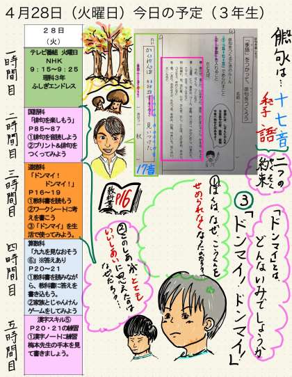 家での過(す)ごし方や、学校に来て楽(たの)しみなことなど、みなさんの言葉がとてもうれしいです。