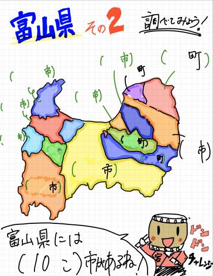 私たちが住んでいる富山県にある市の数と、どんな市があるか調べてみましょう!