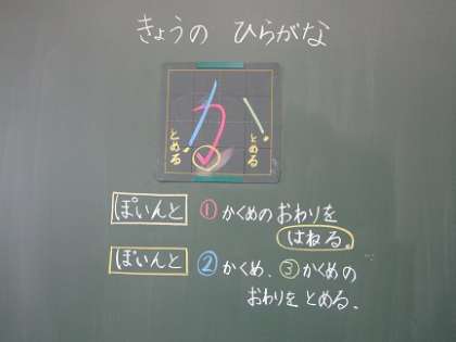 きょうの ひらがなは、「か」と「ち」です。きょうも、ただしい えんぴつの もちかたで しっかり れんしゅうしましょう。