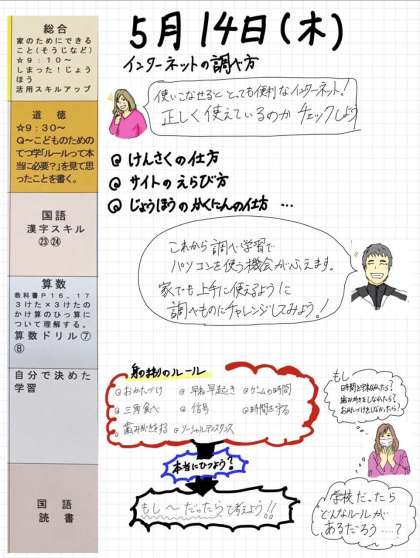 今日の2時間目は、道徳です。9時半からEテレで入る「こどものためのてつ学」を見て、ワークシートに自分の考えを書きましょう。では、今日も1日、がんばりましょう。