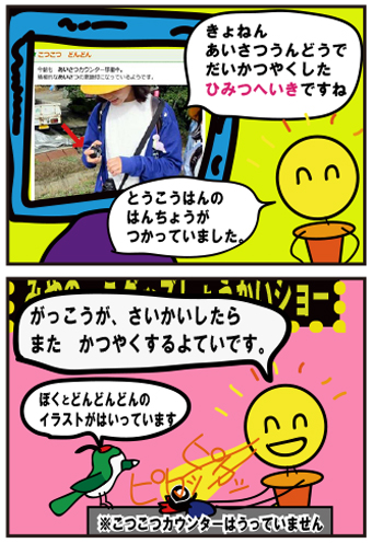 地域にあいさつを広げるために昨年度、集団登校で活用しました。